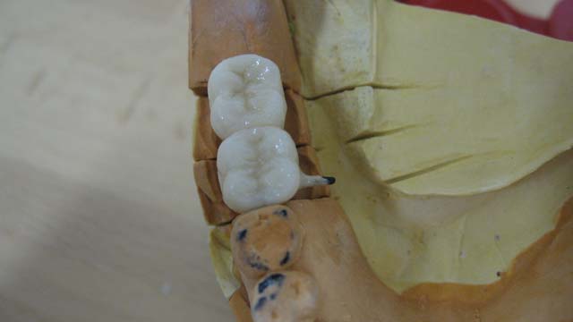 La protesi dentale fissa viene fissata agli elementi pilastro con la cementazione.
